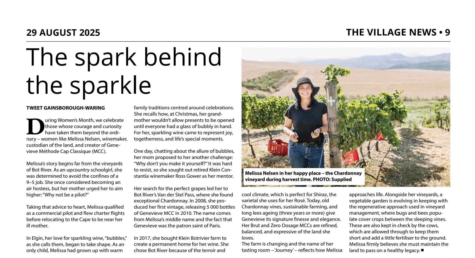 Our wine maker Melissa feature in an article in the Village news, read the article here!